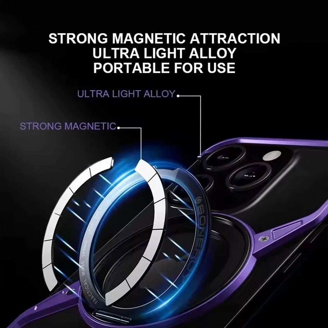Aluminum Alloy Magnetic Metal Wireless Charging Camera Kickstand Phone Case