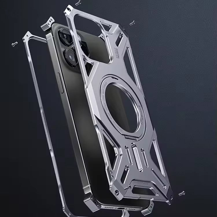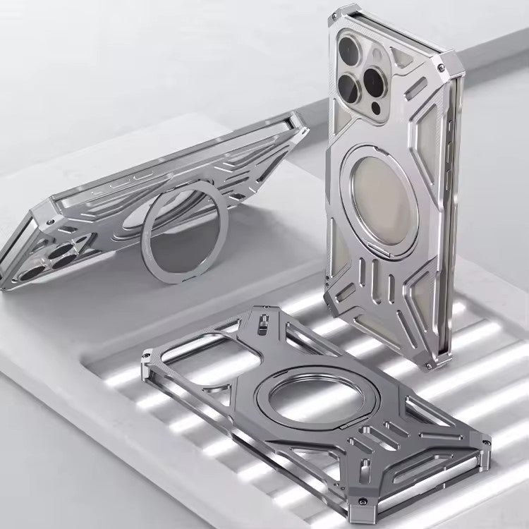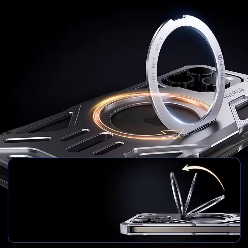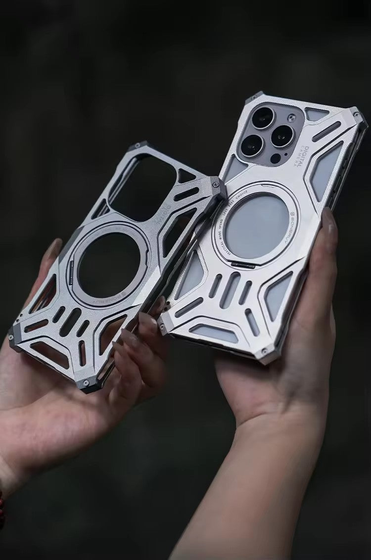 Aluminum Alloy Magnetic Metal Wireless Charging Camera Kickstand Phone Case