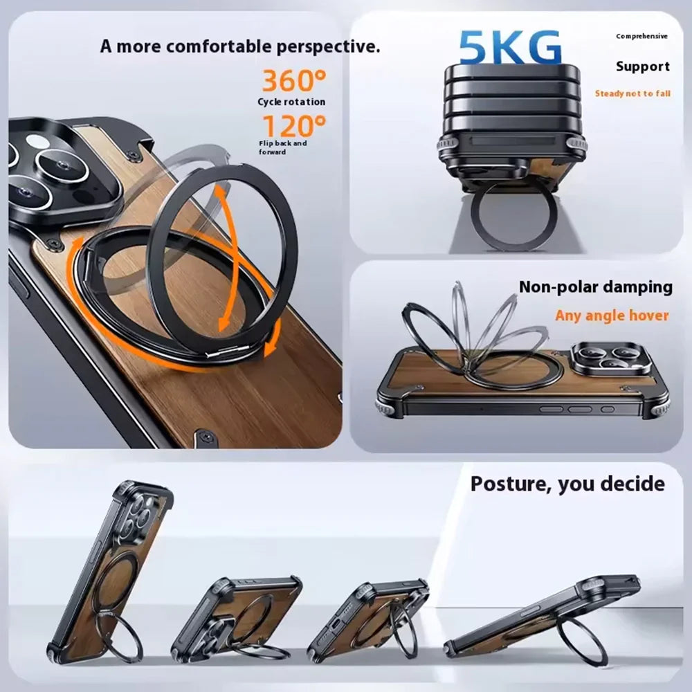 Elevate your iPhone 15 with this luxurious case, crafted from premium walnut wood and durable metal. Its frosted finish offers a sleek, sophisticated look, while the magnetic design ensures a secure fit. Featuring superior lens protection and a seamless blend of natural elegance and modern strength, this case is the epitome of refined luxury. Make a statement with every call.