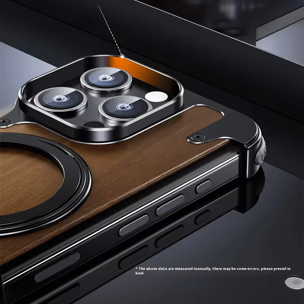 iPhone 15 Series Magnetic Metal Walnut Wood Frosted Case