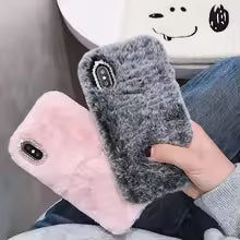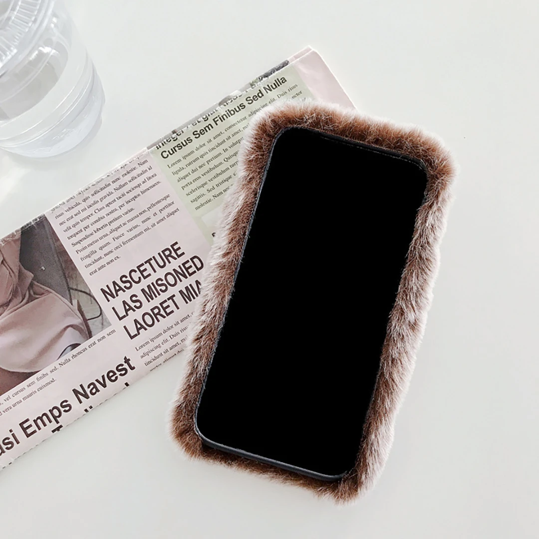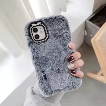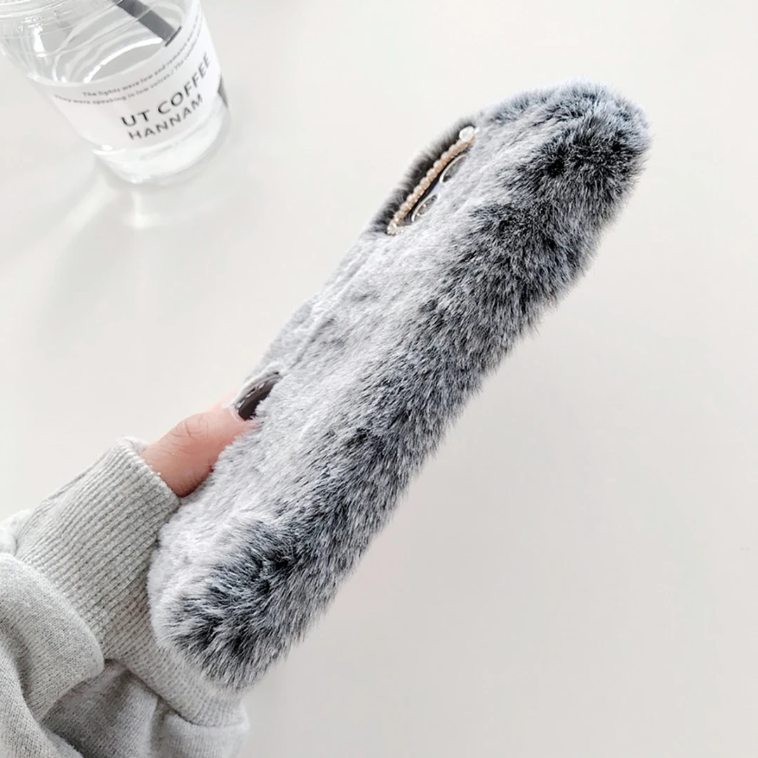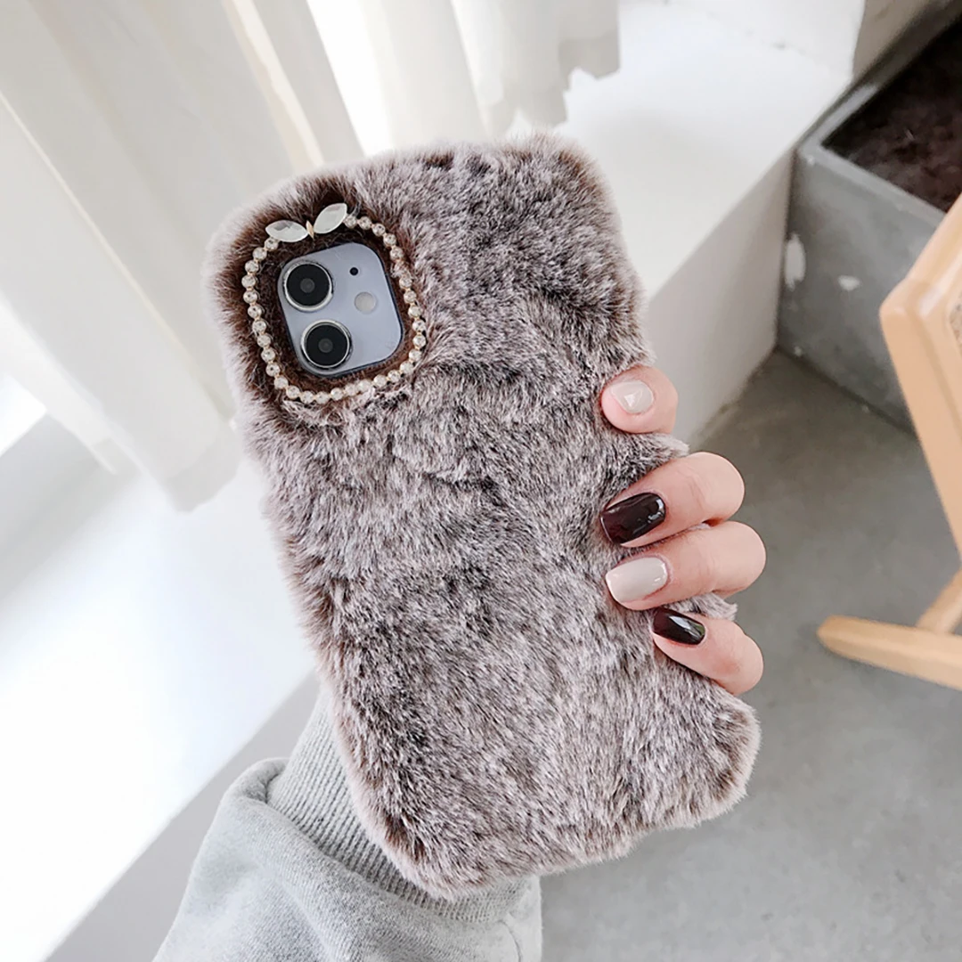 Fur Plush Phone Case for iPhone 14 13 12 11 Pro Max XS Max XR X SE 2020 6S 7 8 Plus Luxury Diamond Glitter Warm Furry Soft Cover