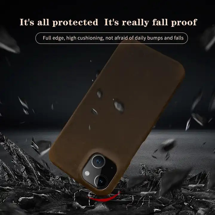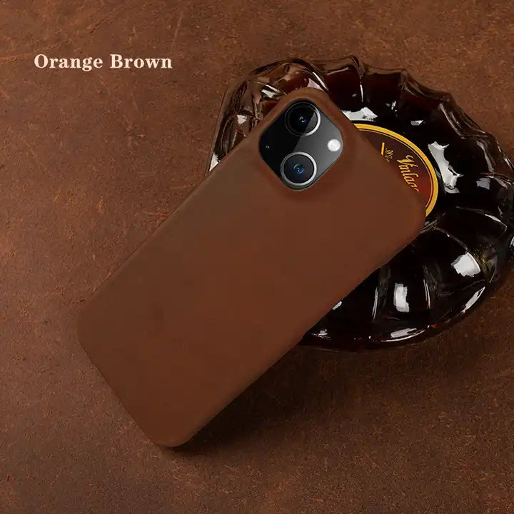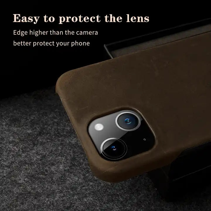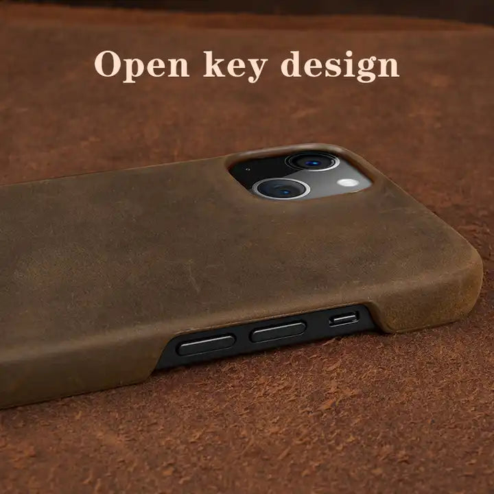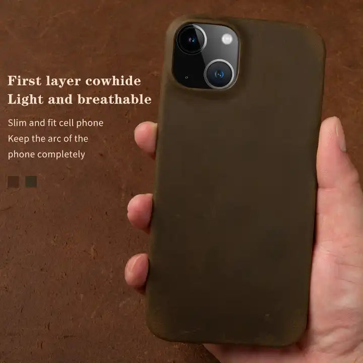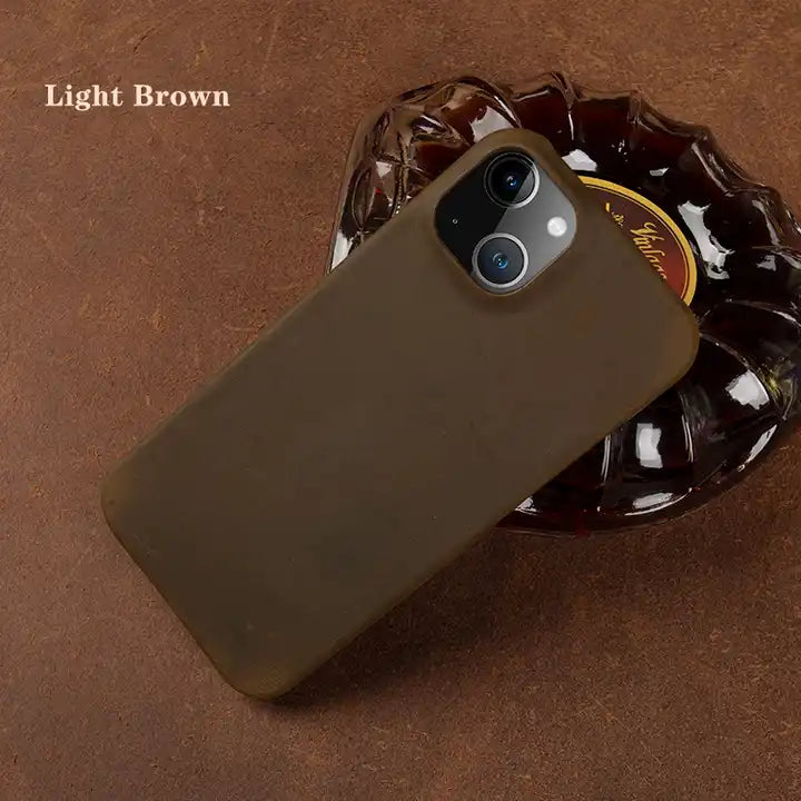 Luxury Genuine Leather Crazy Horse Pattern Phone Case with MagSafe