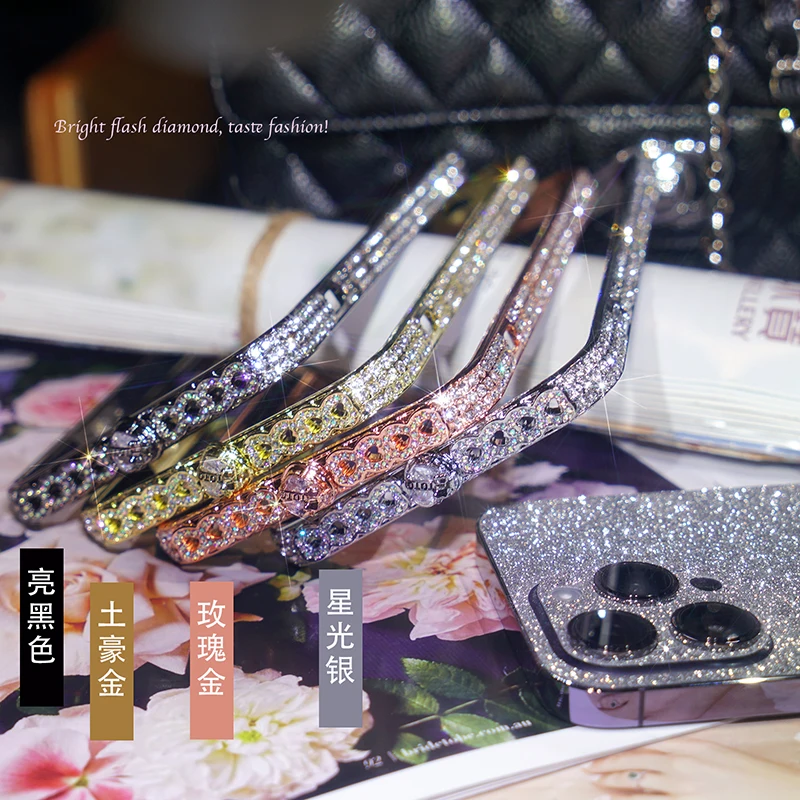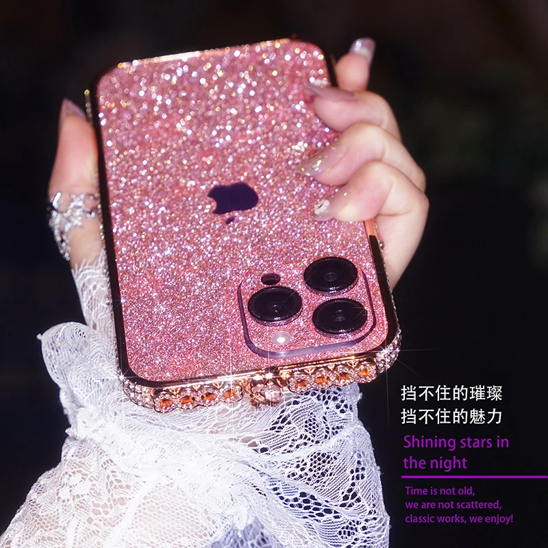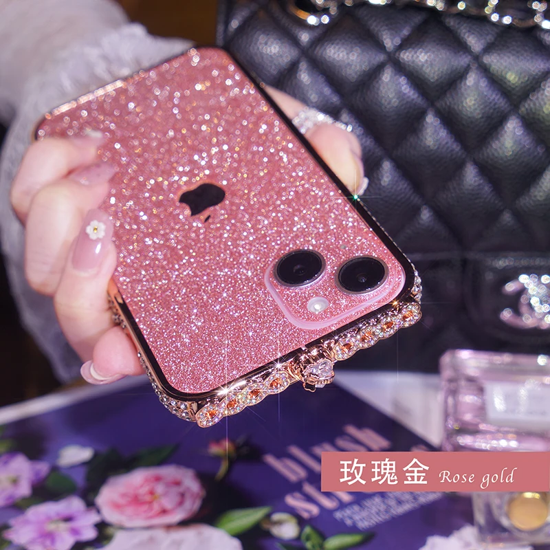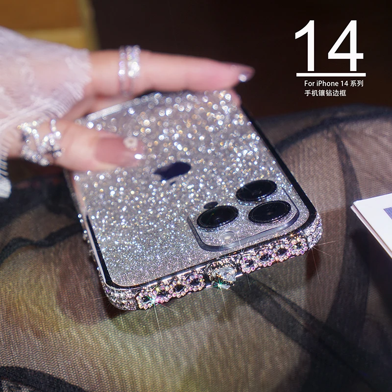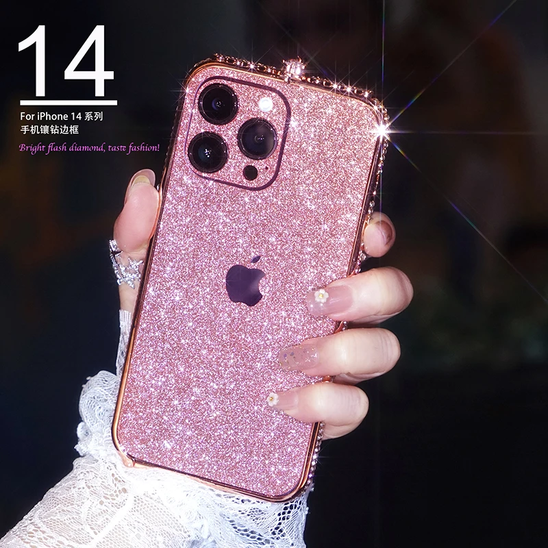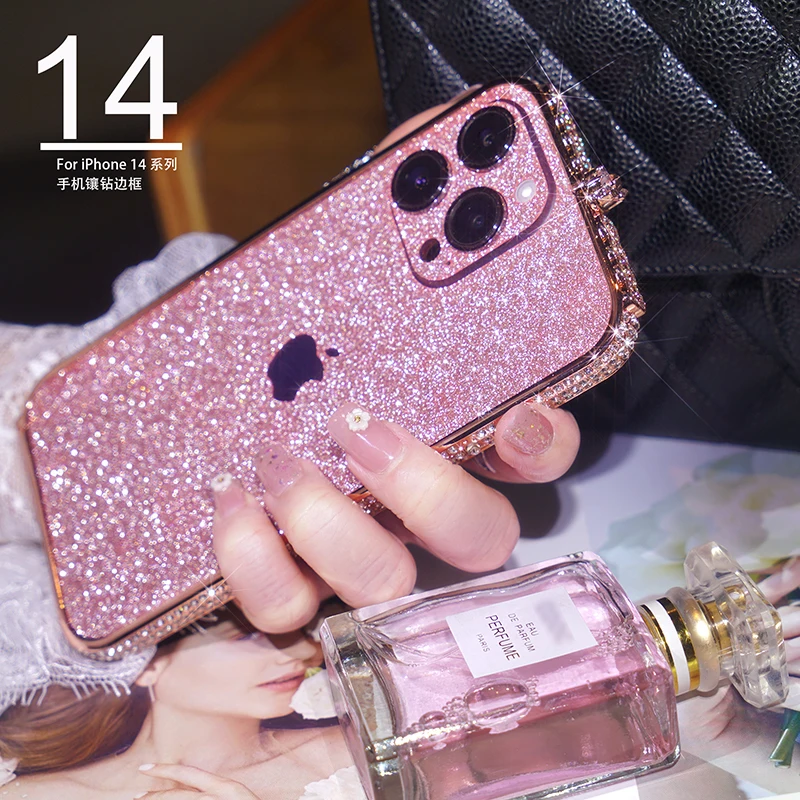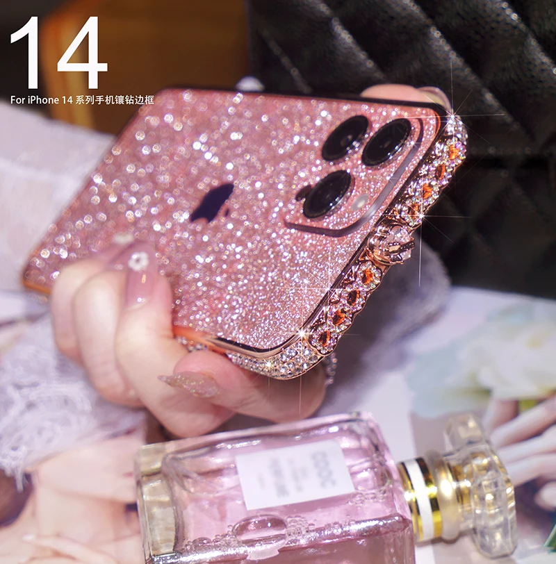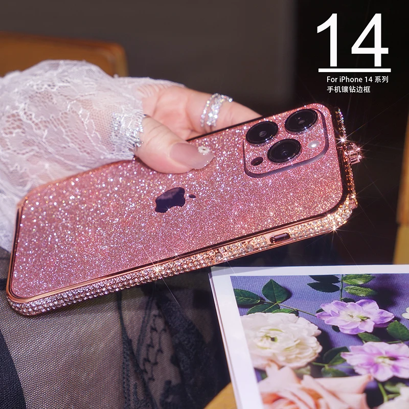 Luxury Glitter Case For iPhone 12 13 14 15 16 Pro Max Jewelled Plus Metal Frame Sticker Backplane Plus uncover Apple LOGO