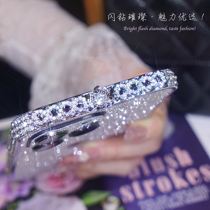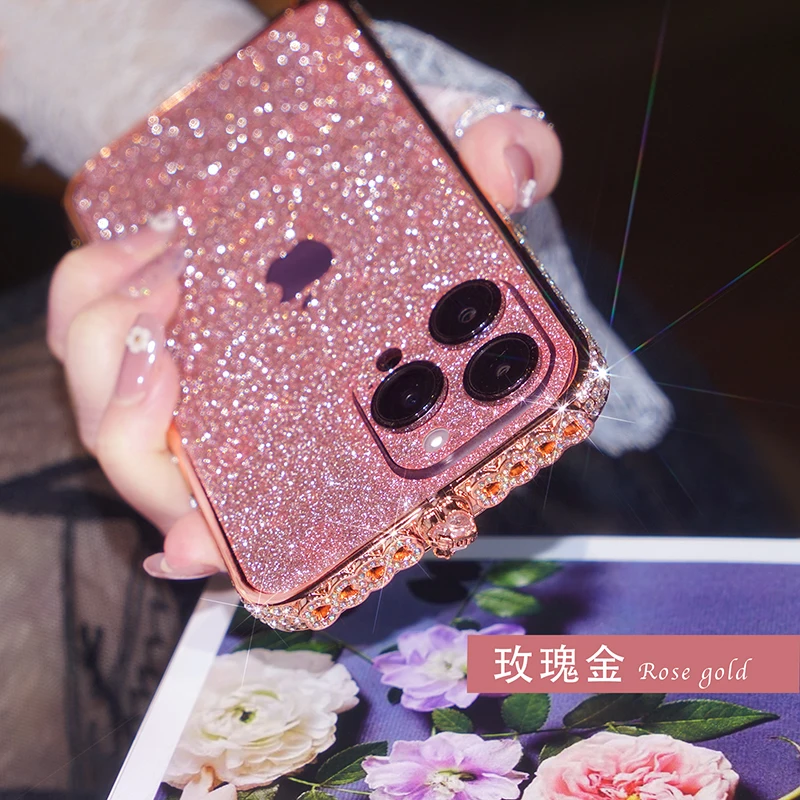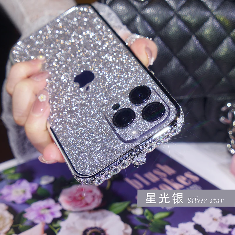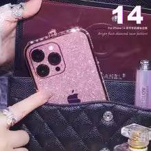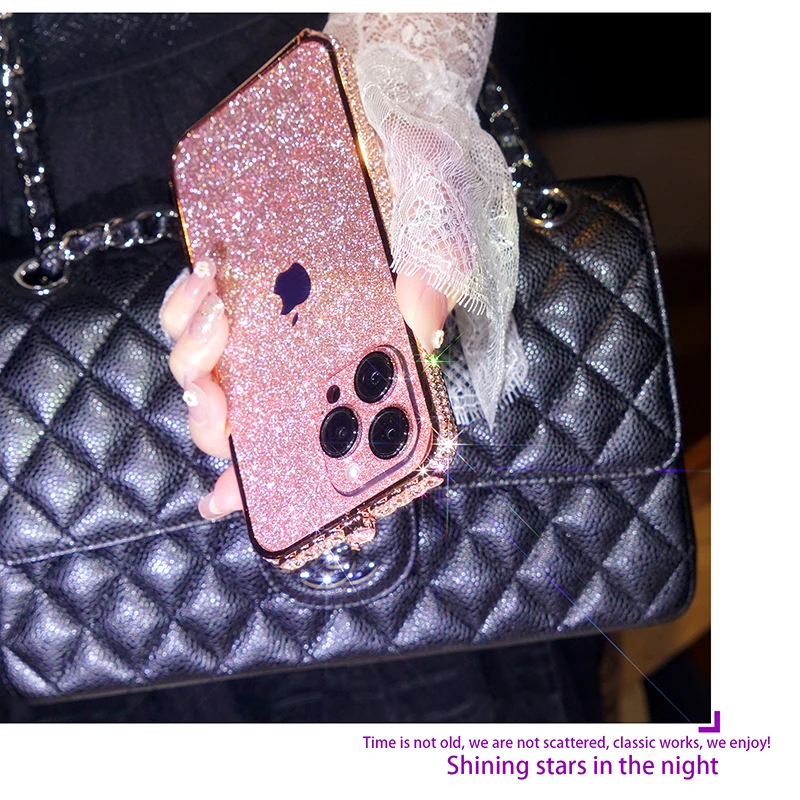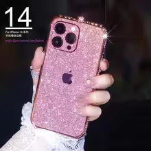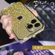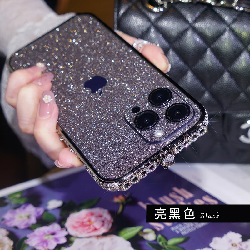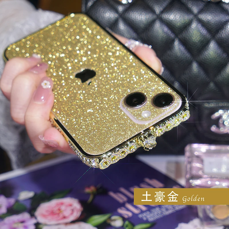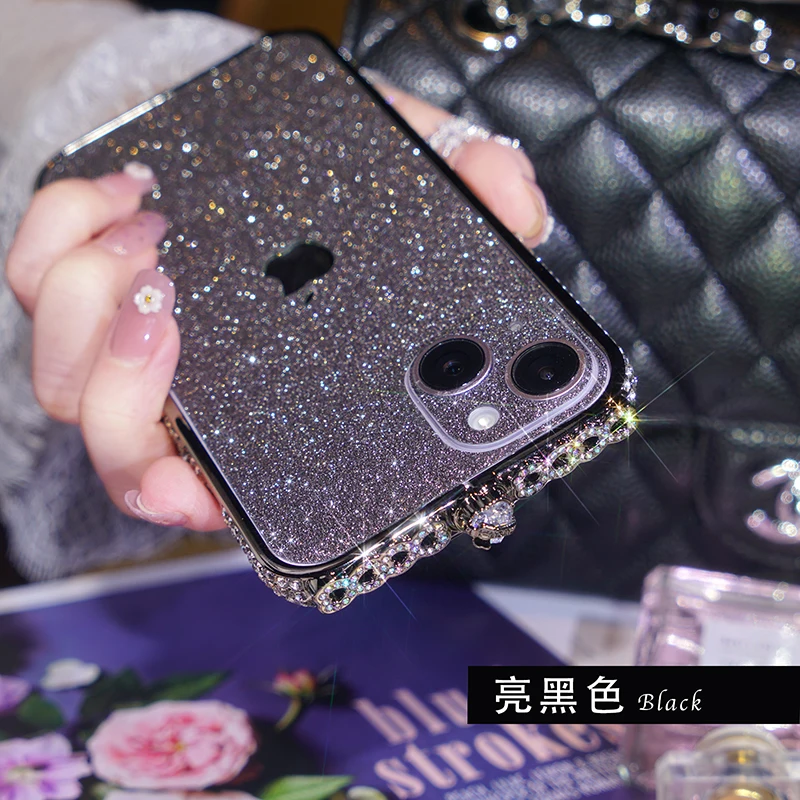 Luxury Glitter Case For iPhone 12 13 14 15 16 Pro Max Jewelled Plus Metal Frame Sticker Backplane Plus uncover Apple LOGO