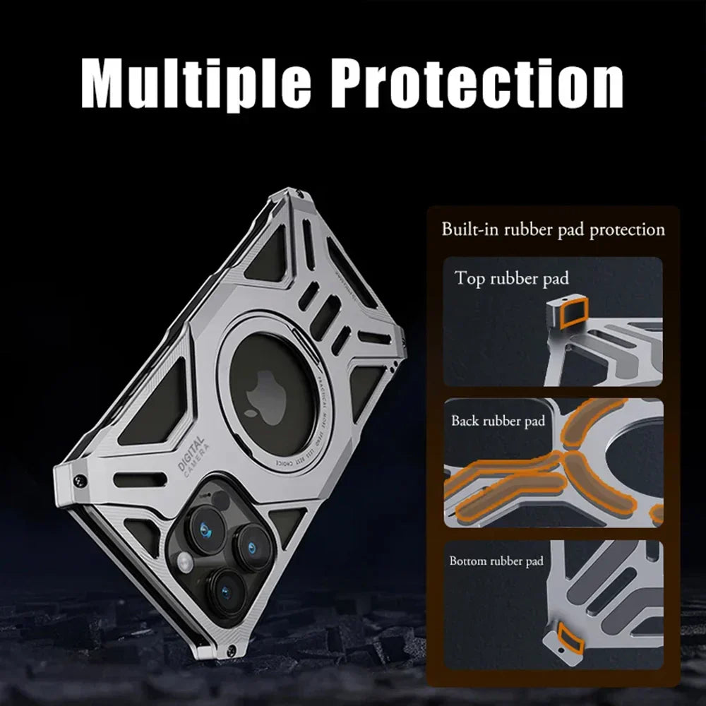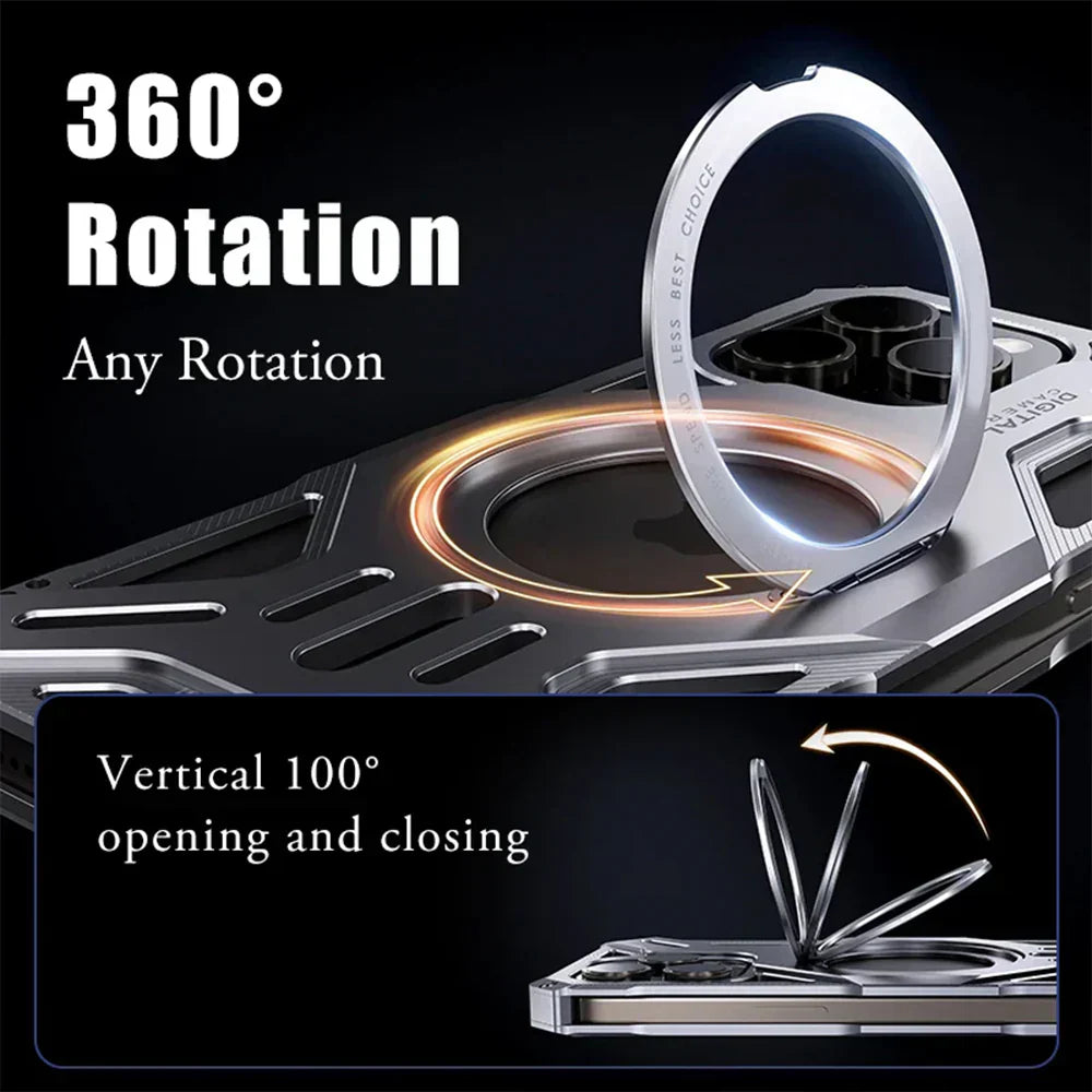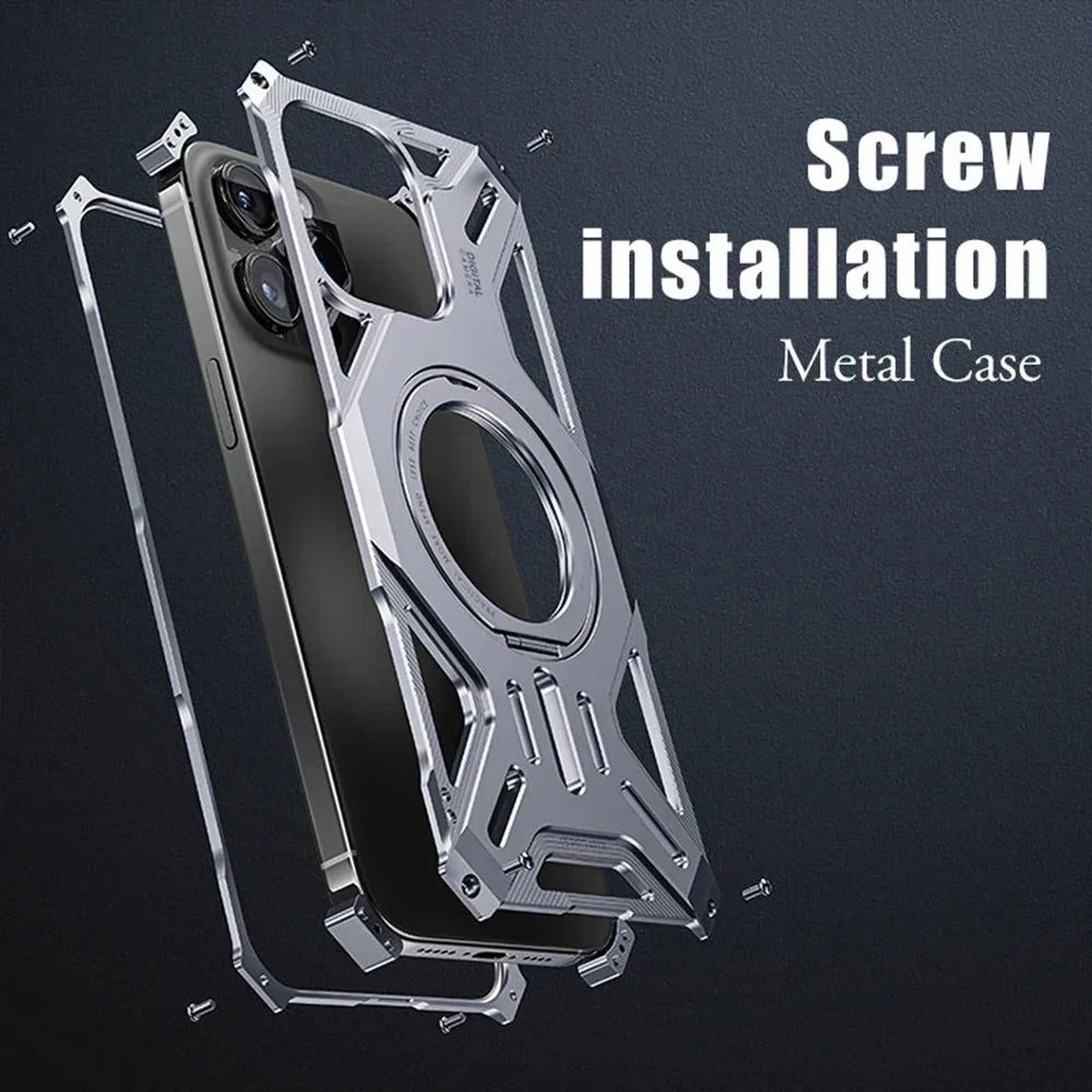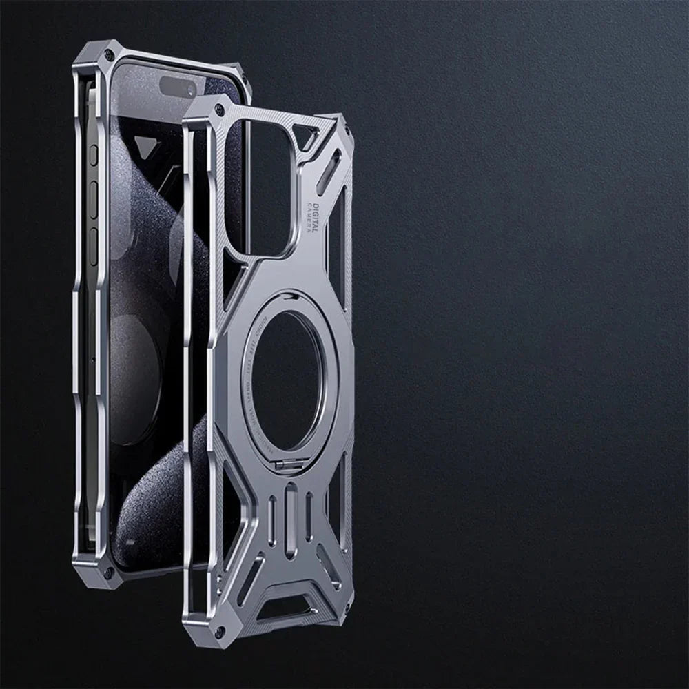 Elevate your iPhone experience with the Luxury Hollow Aluminum iPhone Case. Crafted from premium aluminum alloy, this case provides robust protection while enhancing heat dissipation. The integrated MagSafe stand offers seamless magnetic attachment and hands-free convenience. Precision-engineered for iPhone series, it ensures a snug fit and easy access to all ports.