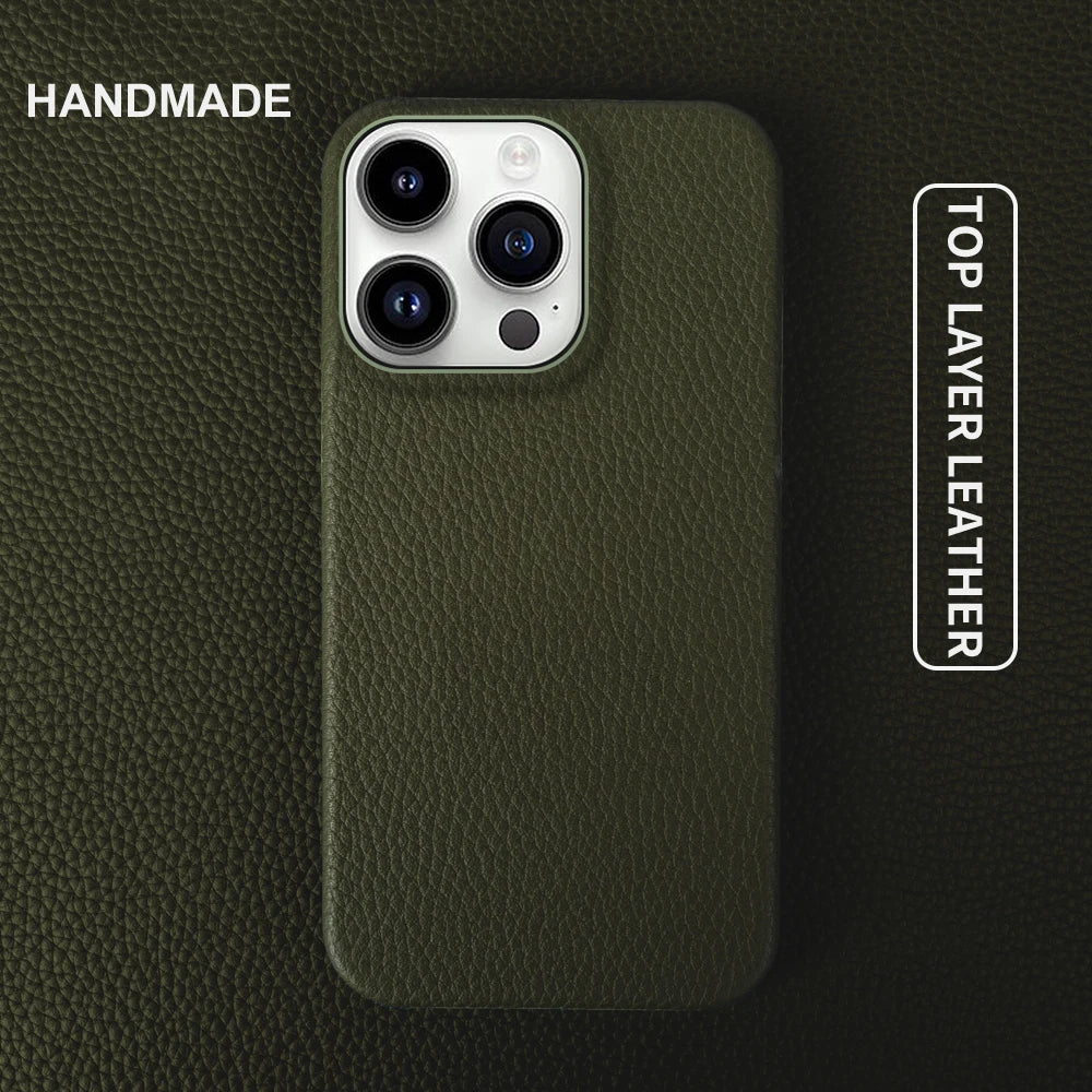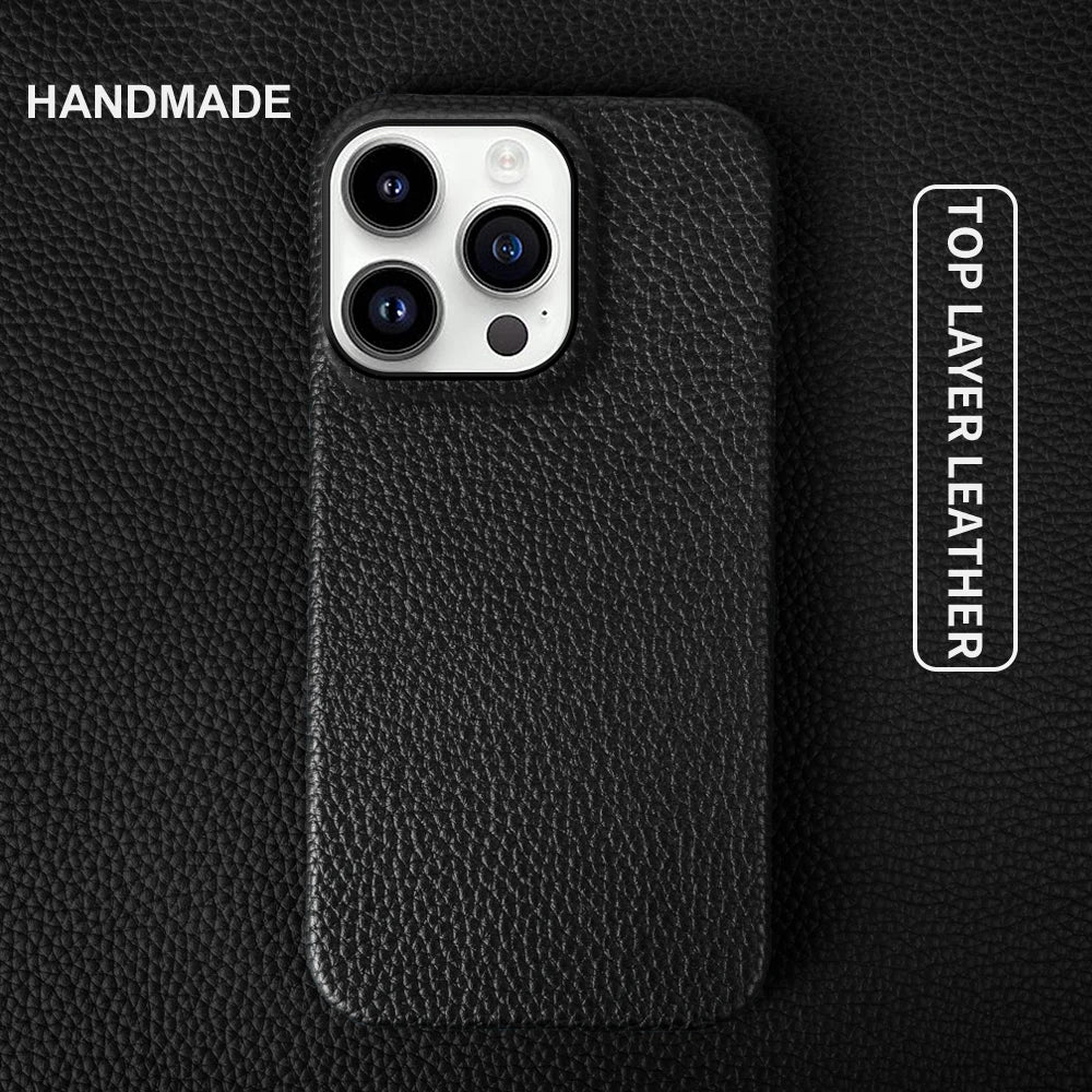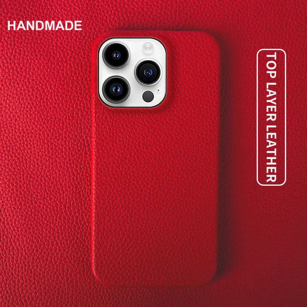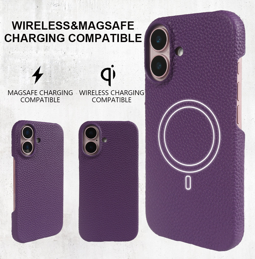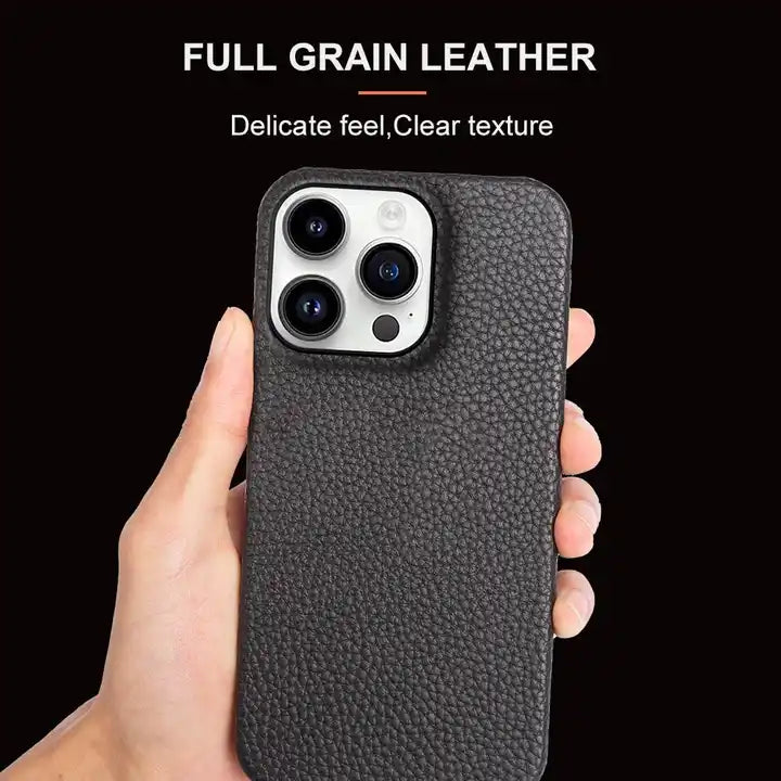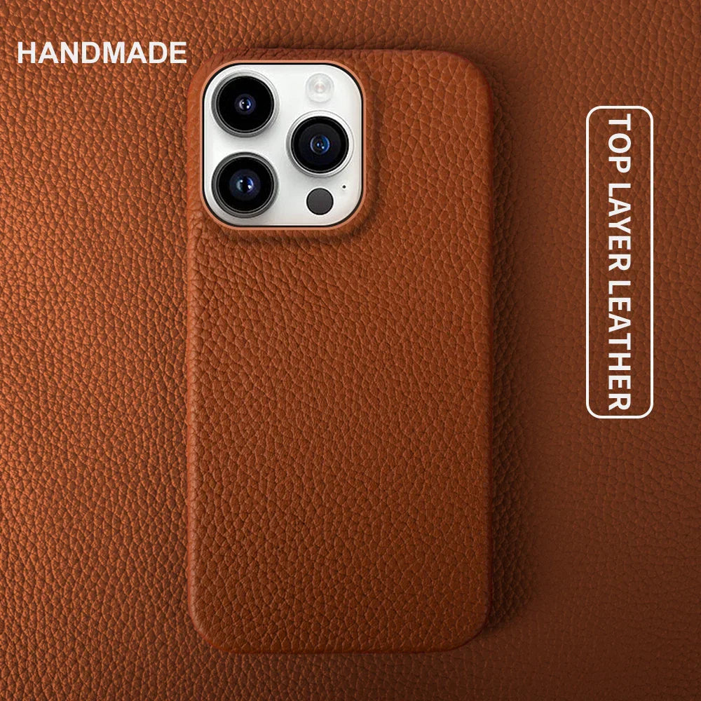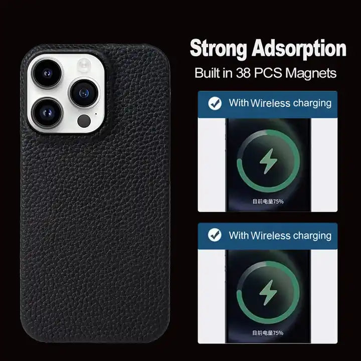 Luxury Real Leather Phone Case with MagSafe (Lychee Pattern)