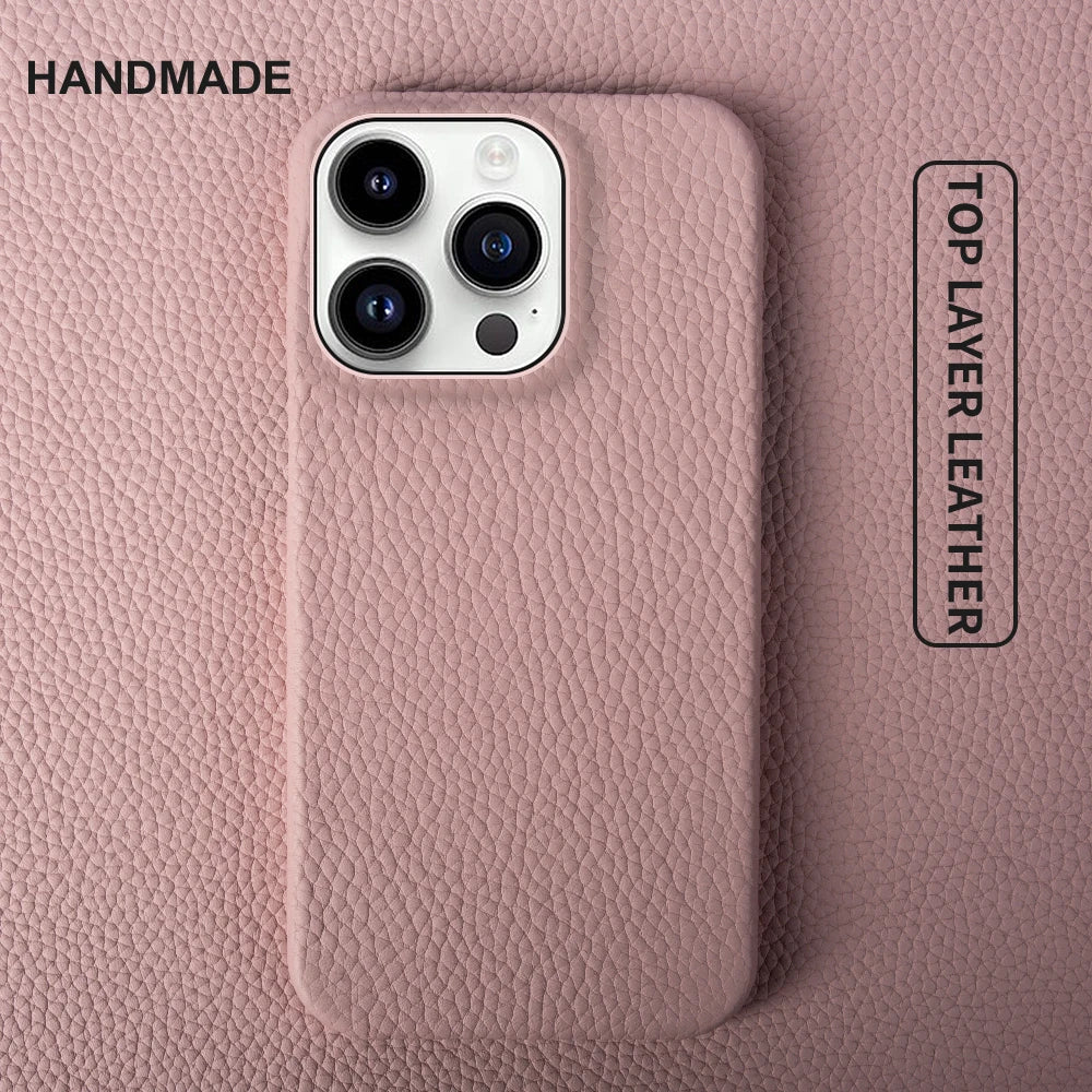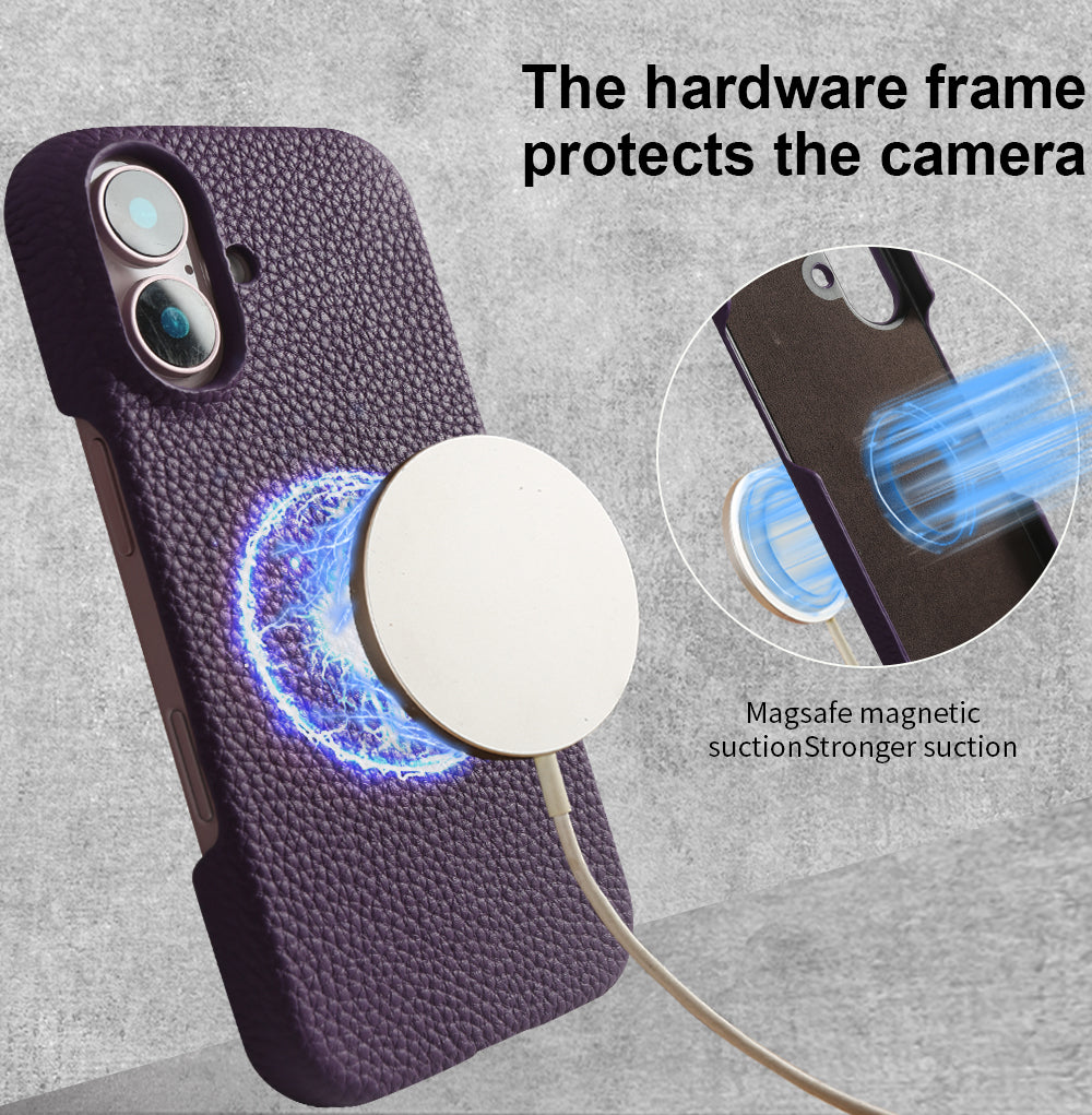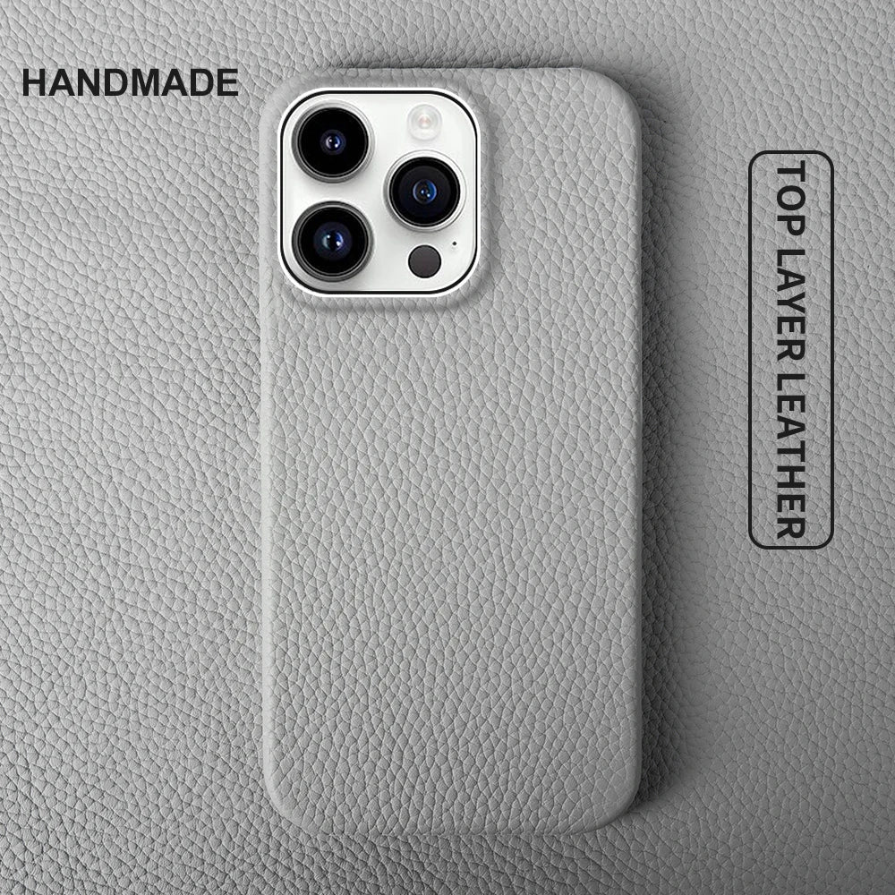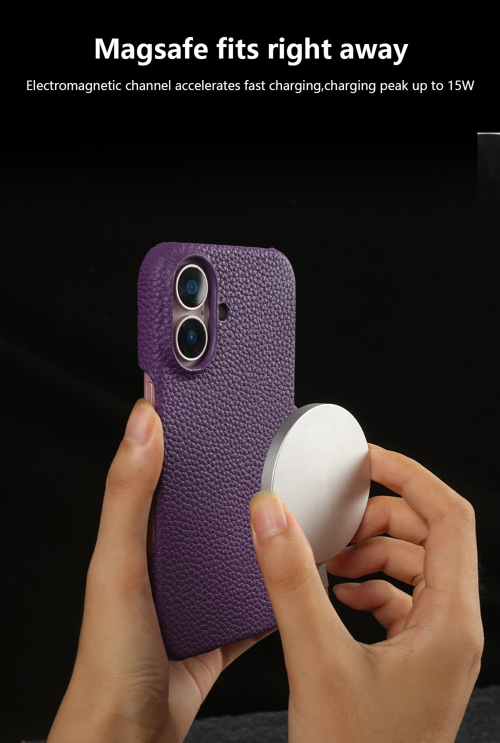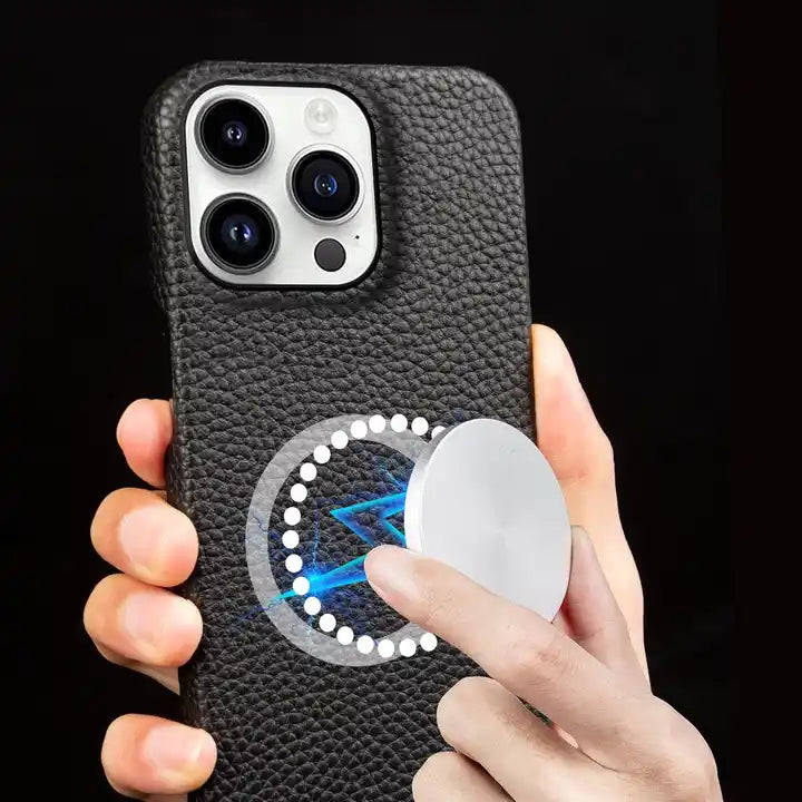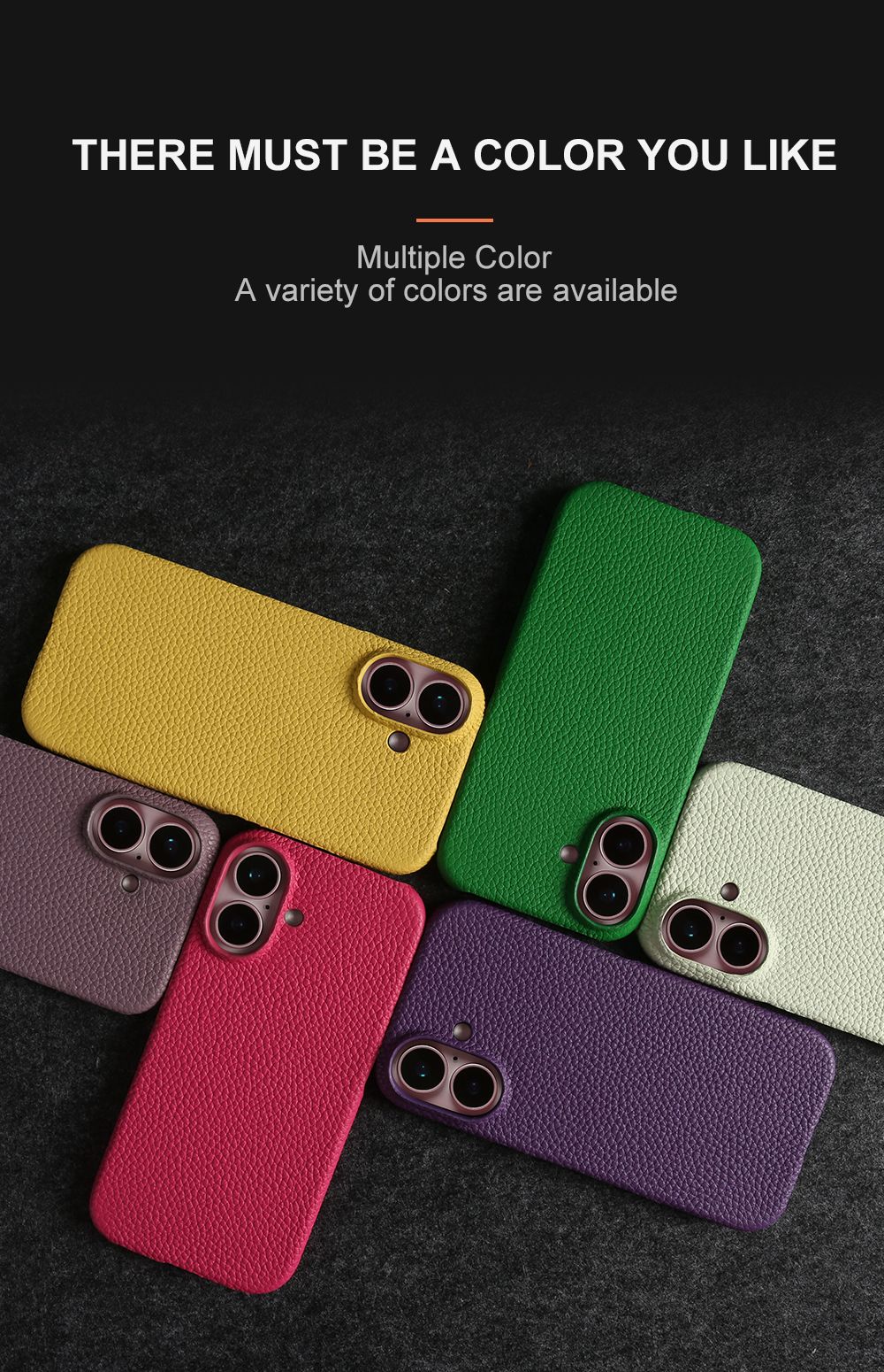 Luxury Real Leather Phone Case with MagSafe (Lychee Pattern)
