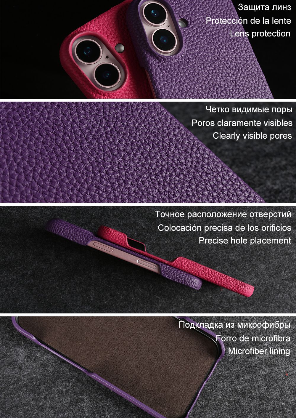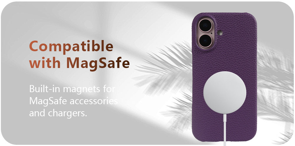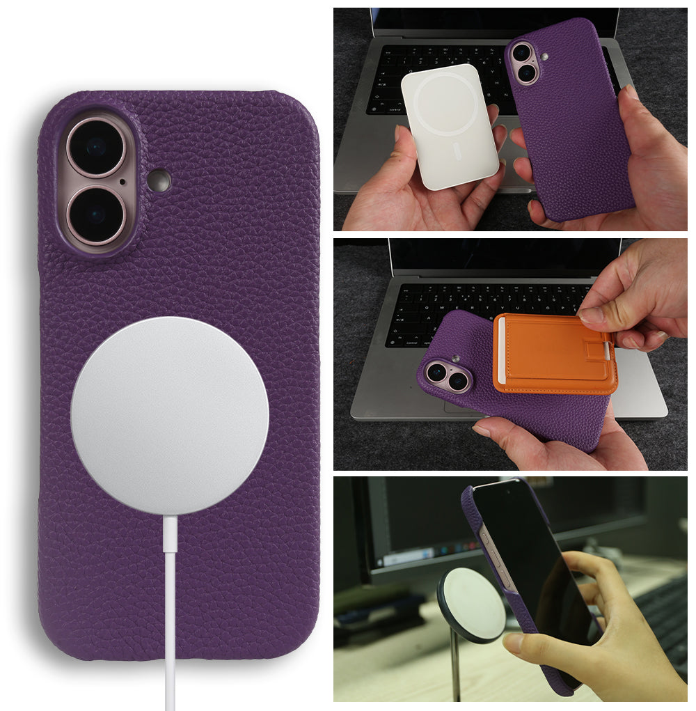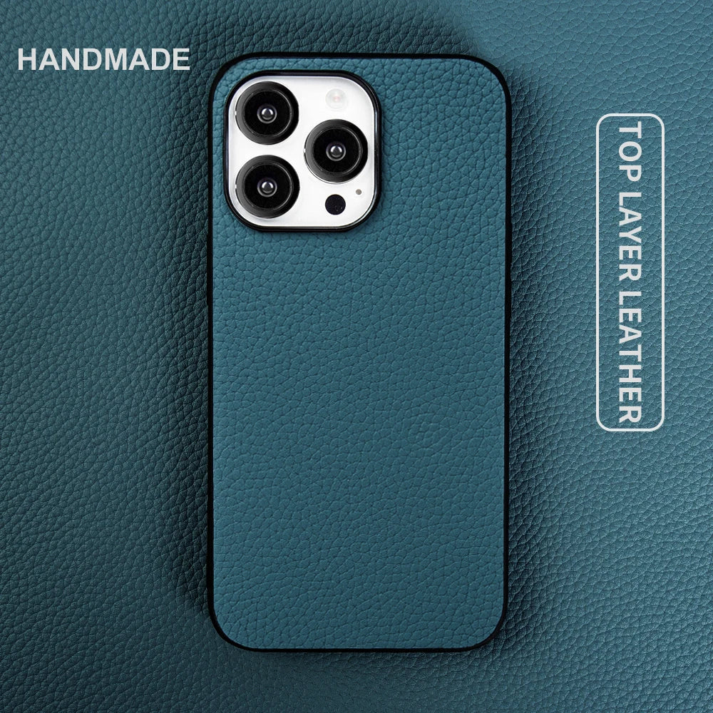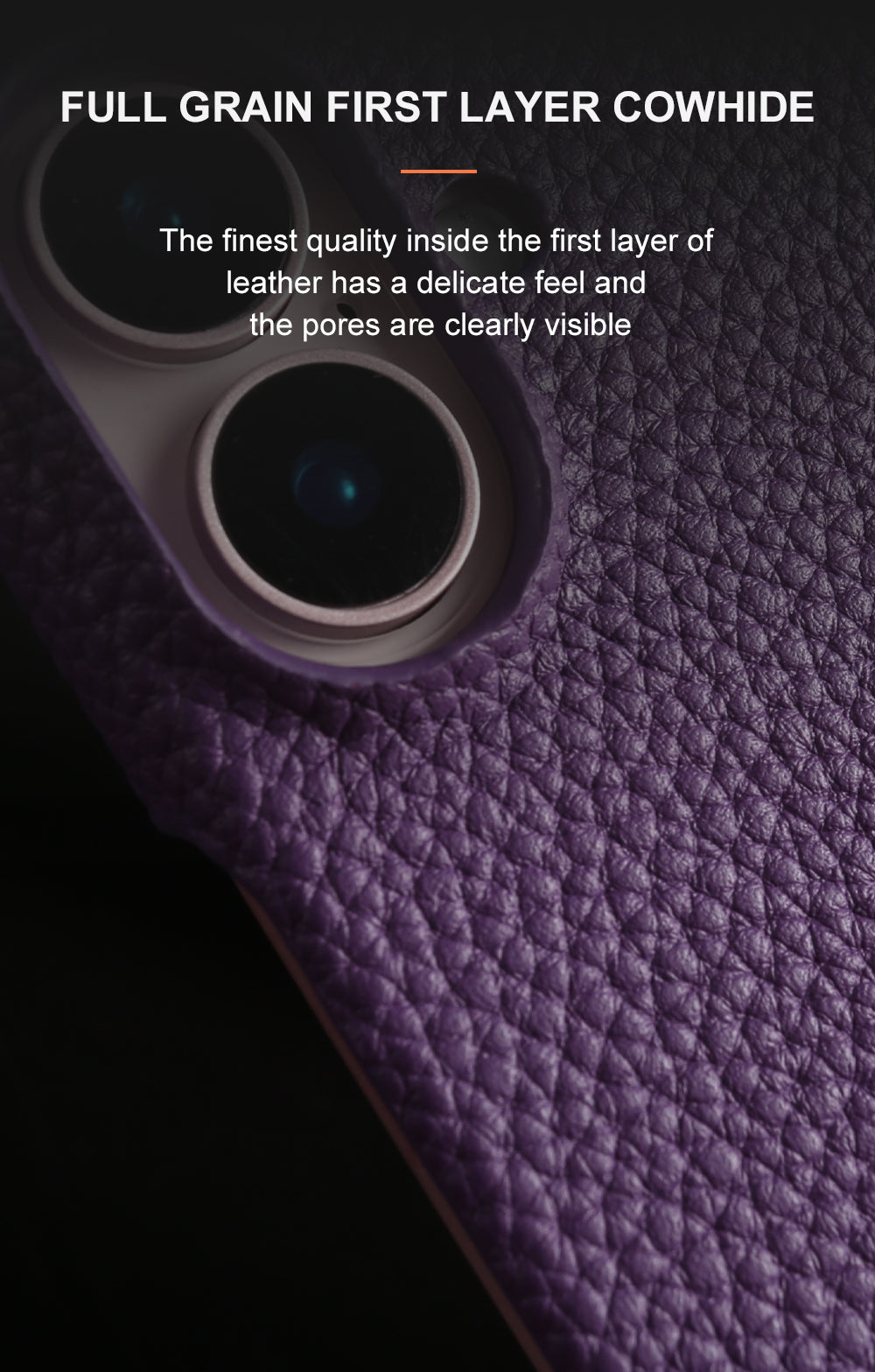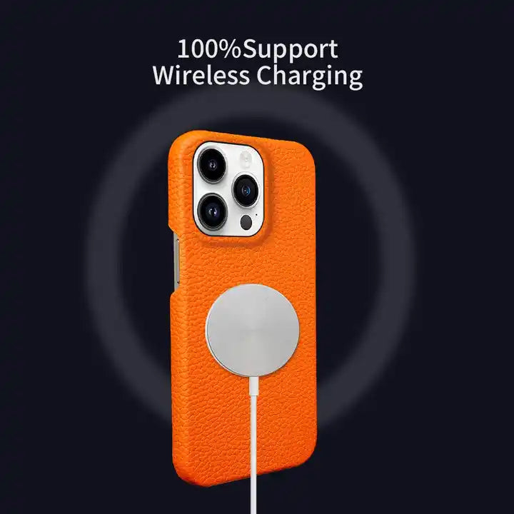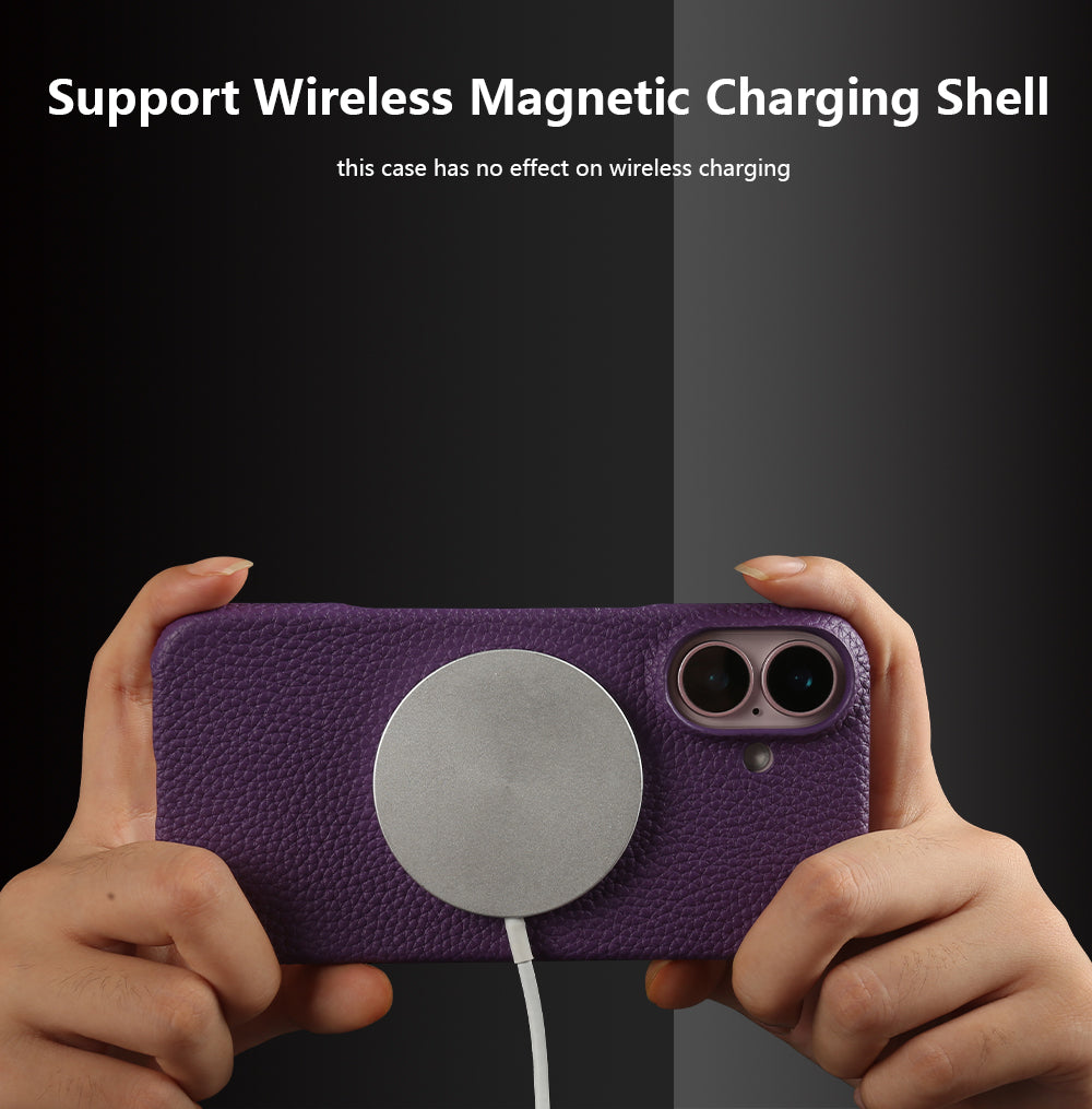 Luxury Real Leather Phone Case with MagSafe (Lychee Pattern)