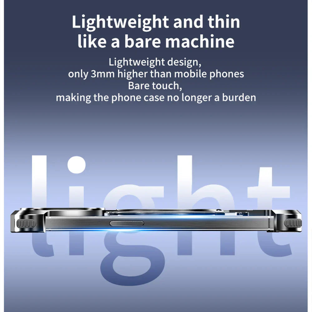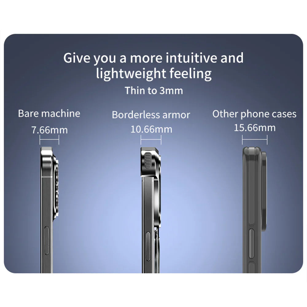 Elevate your iPhone experience with our Metal Frameless Case, designed for seamless 360° protection. Crafted with precision, this sleek case combines robust metal edges with an innovative frameless design, ensuring your phone stays safe without compromising style.